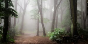 Da jeg løb gennem skoven, kom jeg til at se, hvordan mit blik hele tiden gik fra at fokusere på stien foran mig og op i træerne og det omkring …